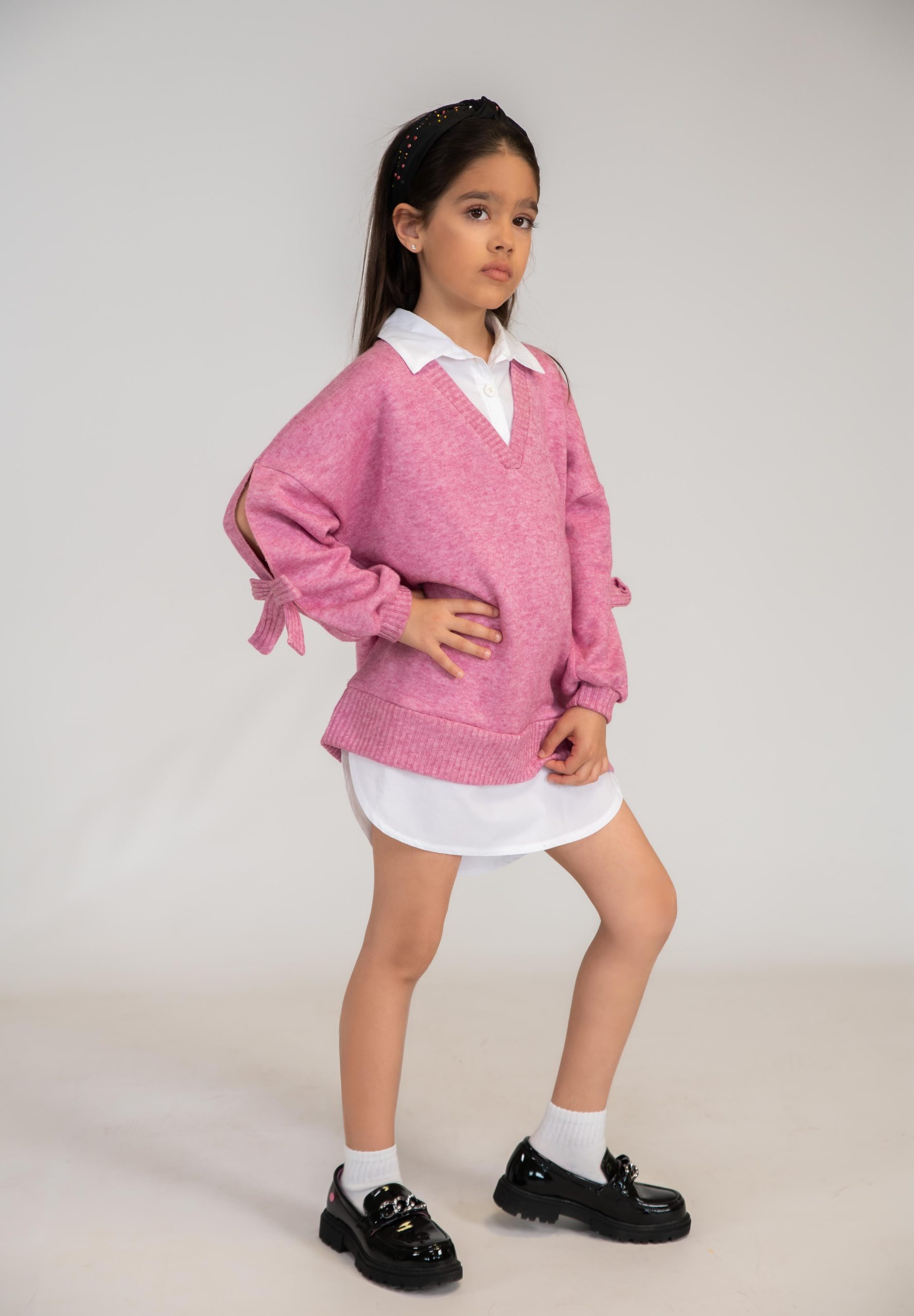 ΠΛΕΚΤΟ ΦΟΡΕΜΑ minimo.bych ΜΕ ΛΕΠΤΟΜΕΡΕΙΕΣ ΑΠΟ ΠΟΠΛΙΝΑ & ΜΑΝΙΚΙΑ ΜΕ ΔΙΑΚΟΣΜΗΤΙΚΟ ΦΙΟΓΚΟ. ΣΥΝΘΕΣΗ : 50%RAY/25%PES/25%PA