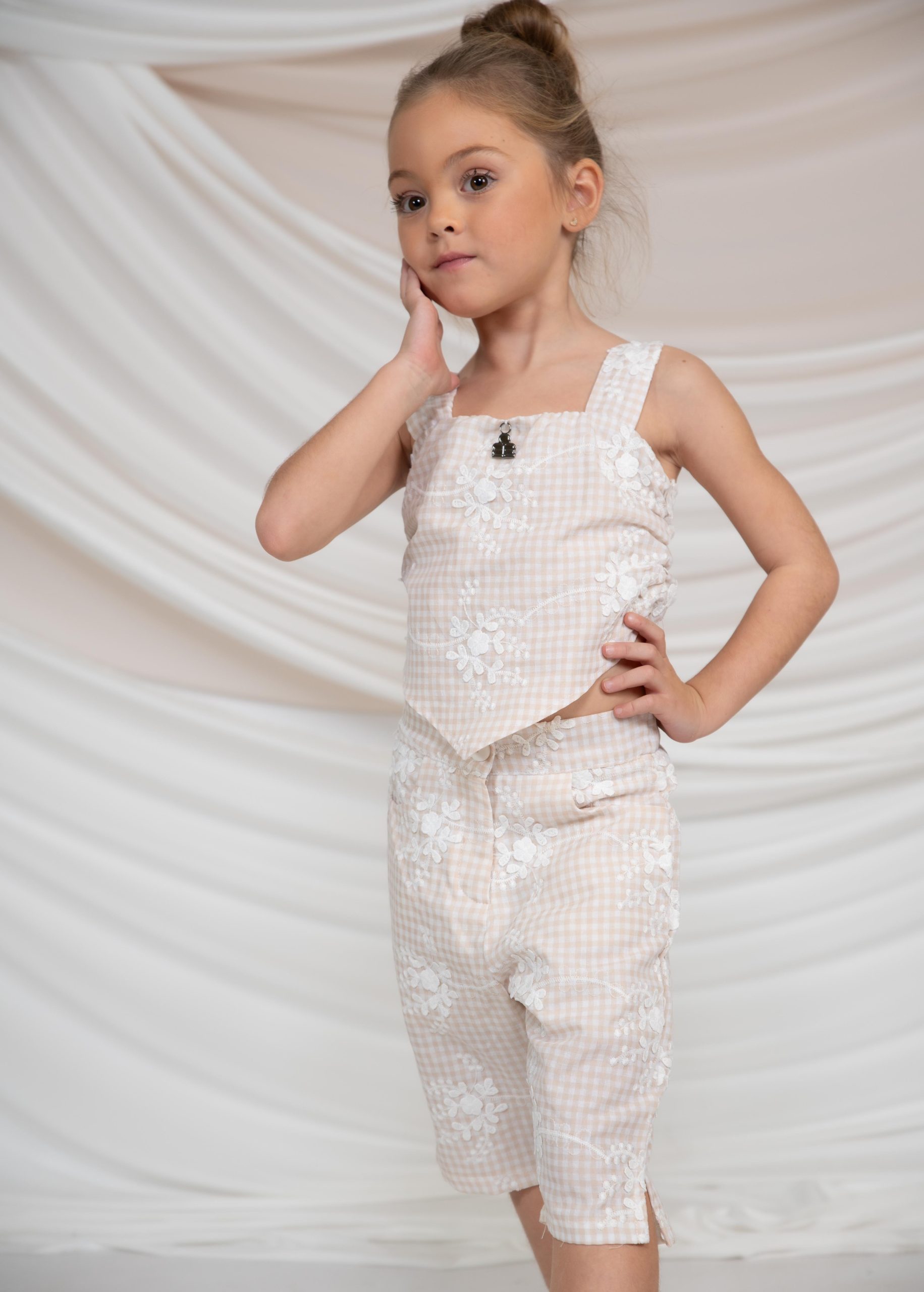 ΣΕΤ 2 ΤΜΧ ΜΠΡΟΝΕΡΙ ΚΑΡΟ ΤΟΠ ΠΟΥ ΔΕΝΕΙ ΠΙΣΩ & CAPRI ΠΑΝΤΕΛΟΝΙ.minimobych ΣΥΝΘΕΣΗ :100%COTTON